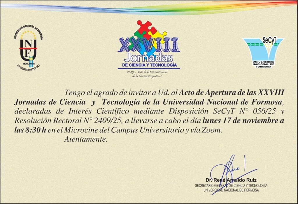 Al respecto, el secretario general de Ciencia y Tecnología de la SeCyT, Dr. René Arnaldo Ruiz, invita a participar del destacado evento.