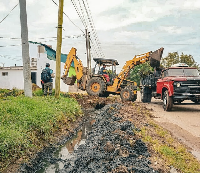 Equipos de la Dirección de Mantenimiento de la Vía Pública, con la colaboración de cooperativistas, emplazaron su retroexcavadora de cruce al brazo del riacho El Pucú, en el B° 12 de Octubre, que recibe el drenaje del lugar, además del de los barrios 28 de Junio, y Salvador Gurrieri, mientras que se llevó a cabo un cuneteo con carga directa sobre Girola y Cuarta en el sector.